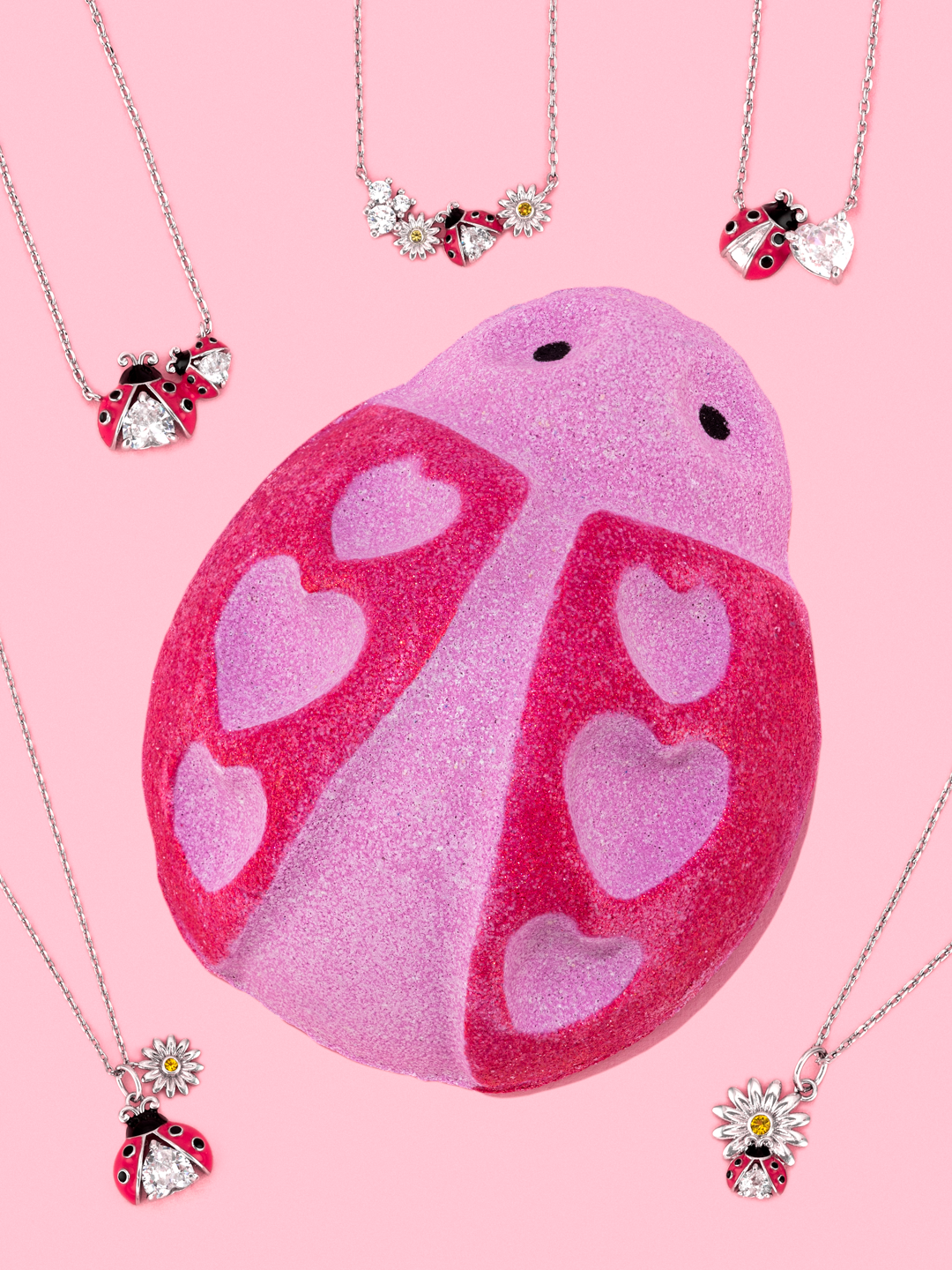 Find a ladybug necklace inside this jewel bath bomb!