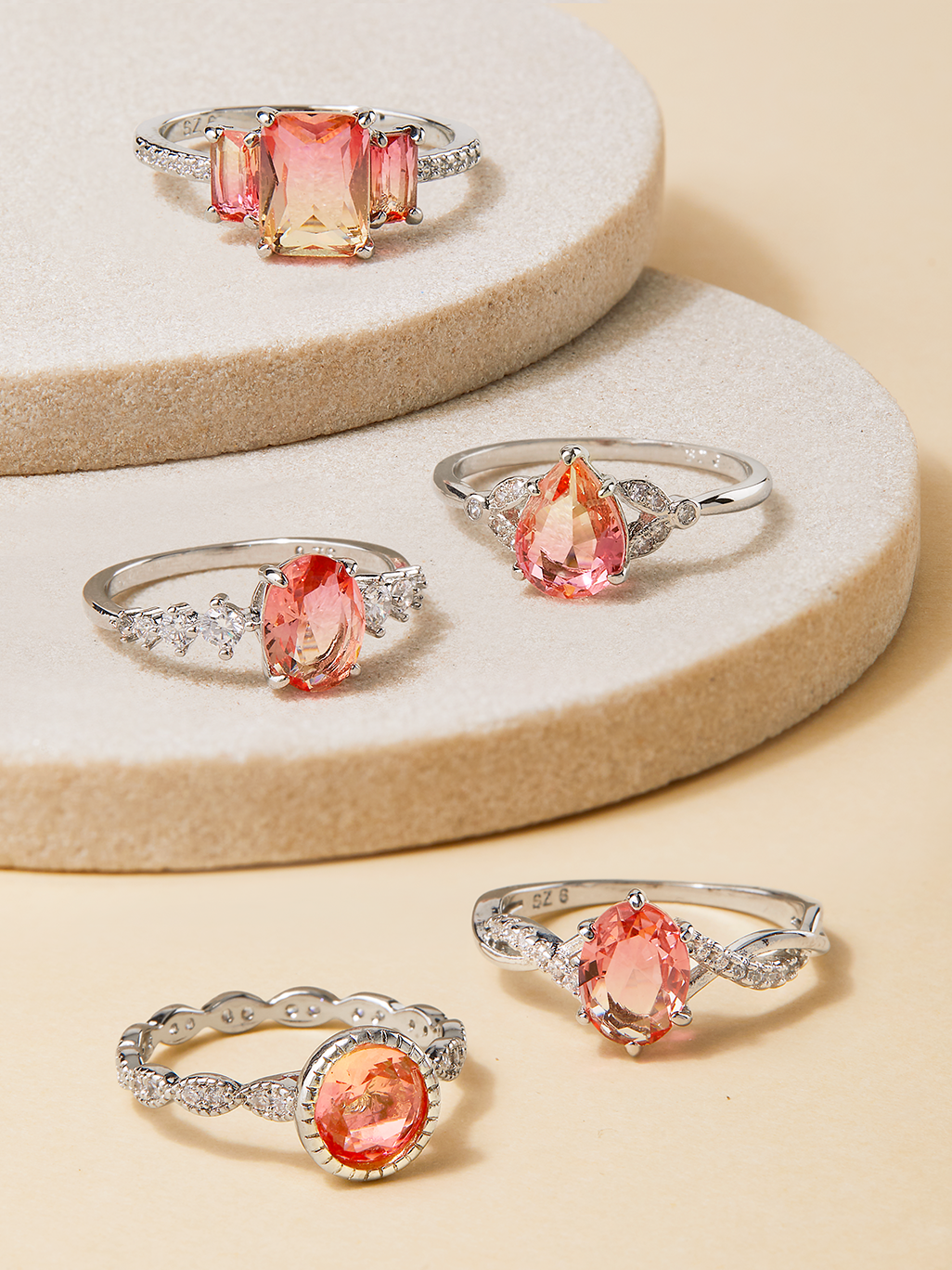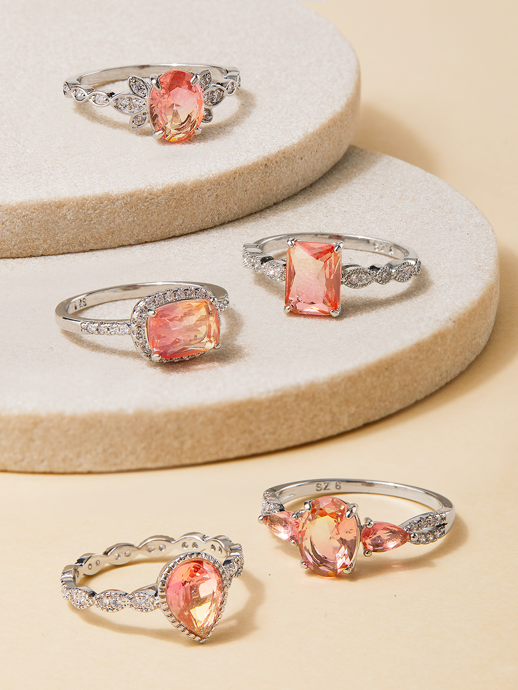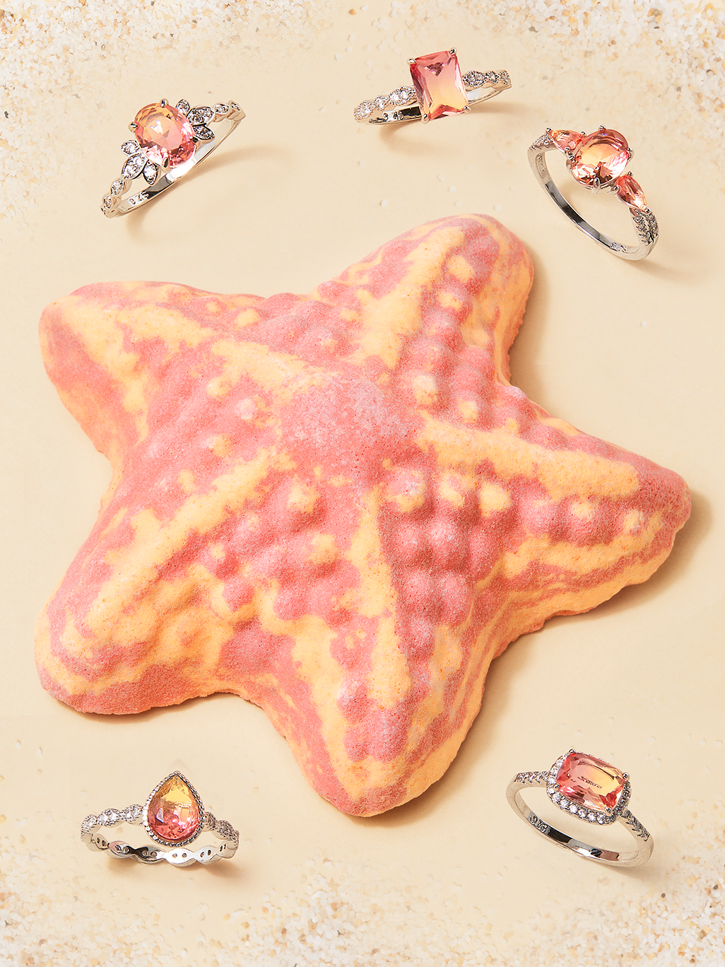 Find a coral gemstone ring made of rhodium plated metal inside this jewel bath bomb!