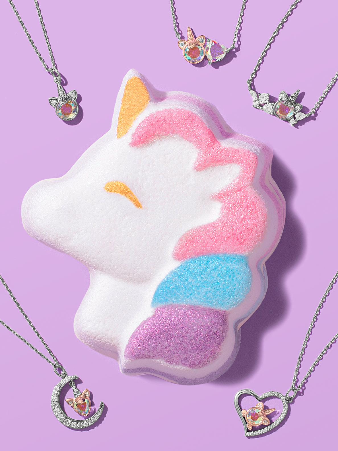 Find a unicorn necklace inside this jewel bath bomb! All necklaces in this collection feature a dazzling...