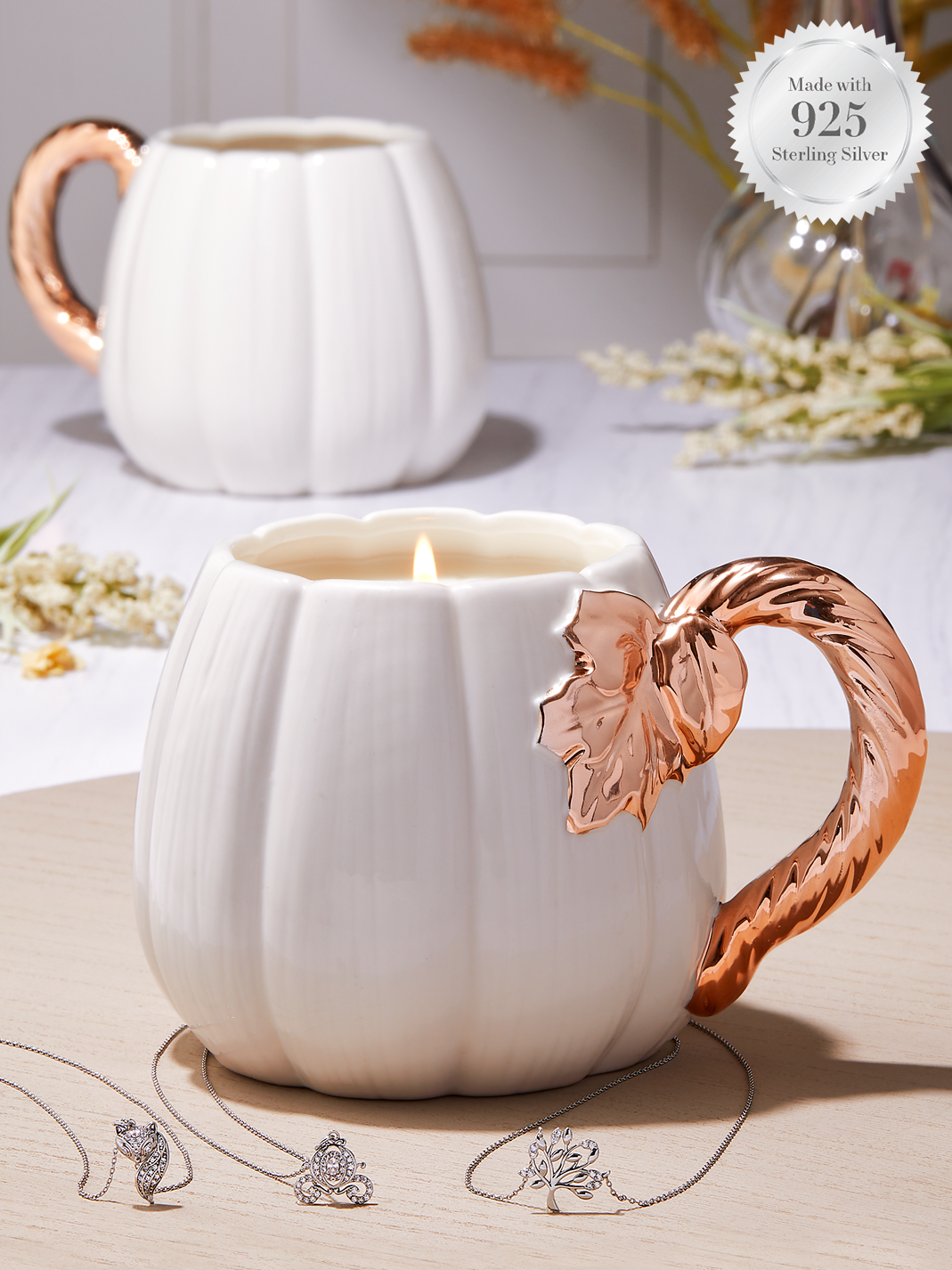 Harvest Pumpkin Mug Candle - 925 Sterling Silver Nature Necklace Collection