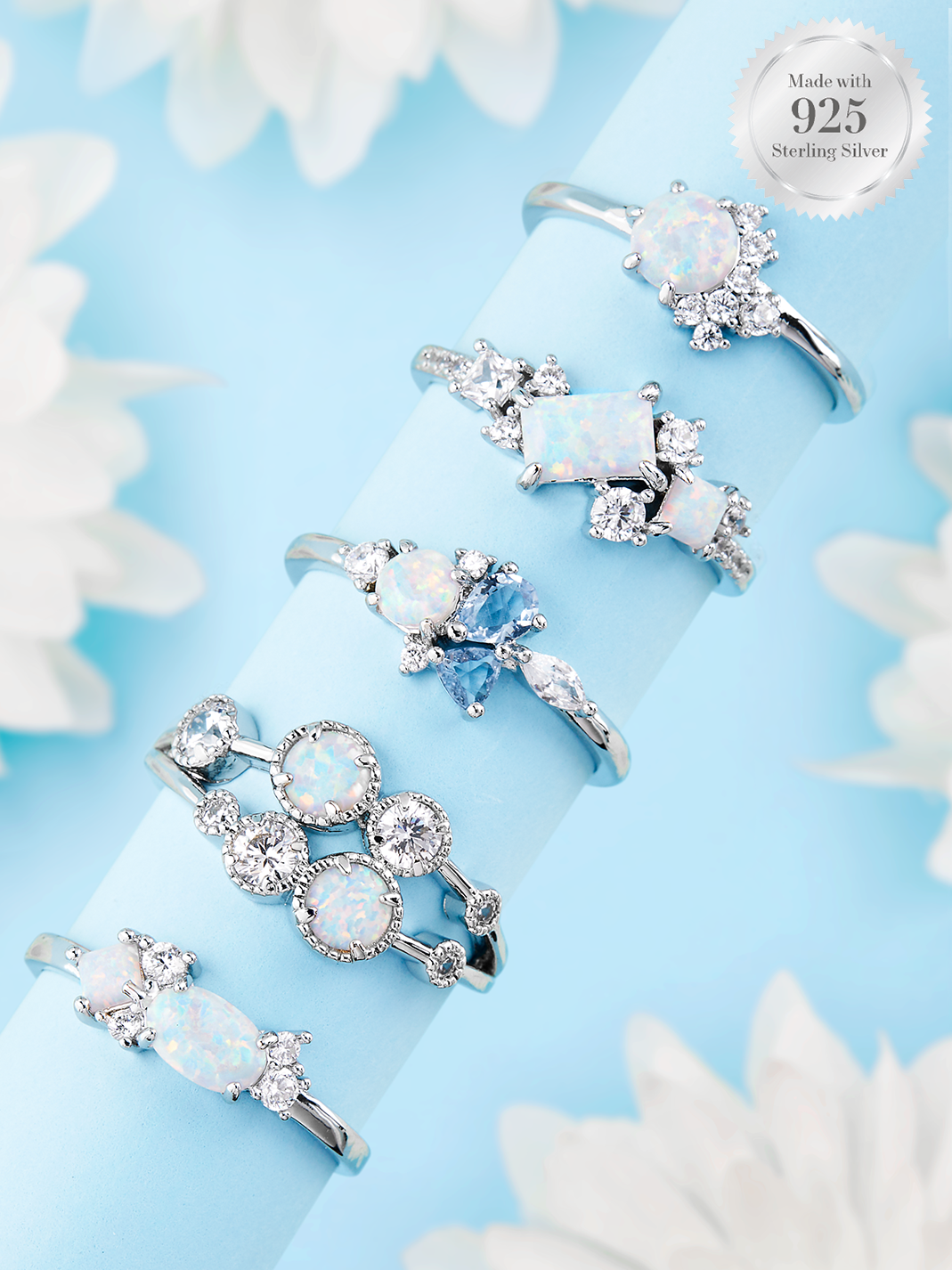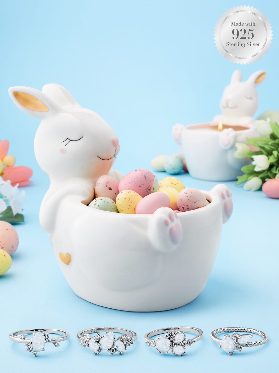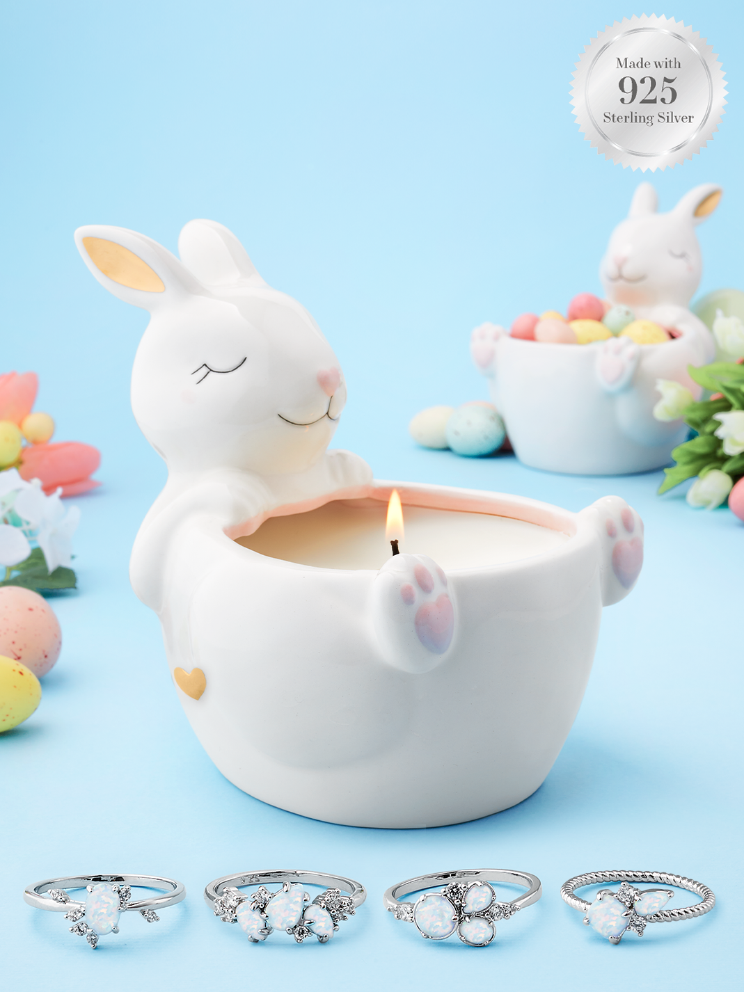 Marshmallow Bunny Candle - 925 Sterling Silver Opal Ring Collection